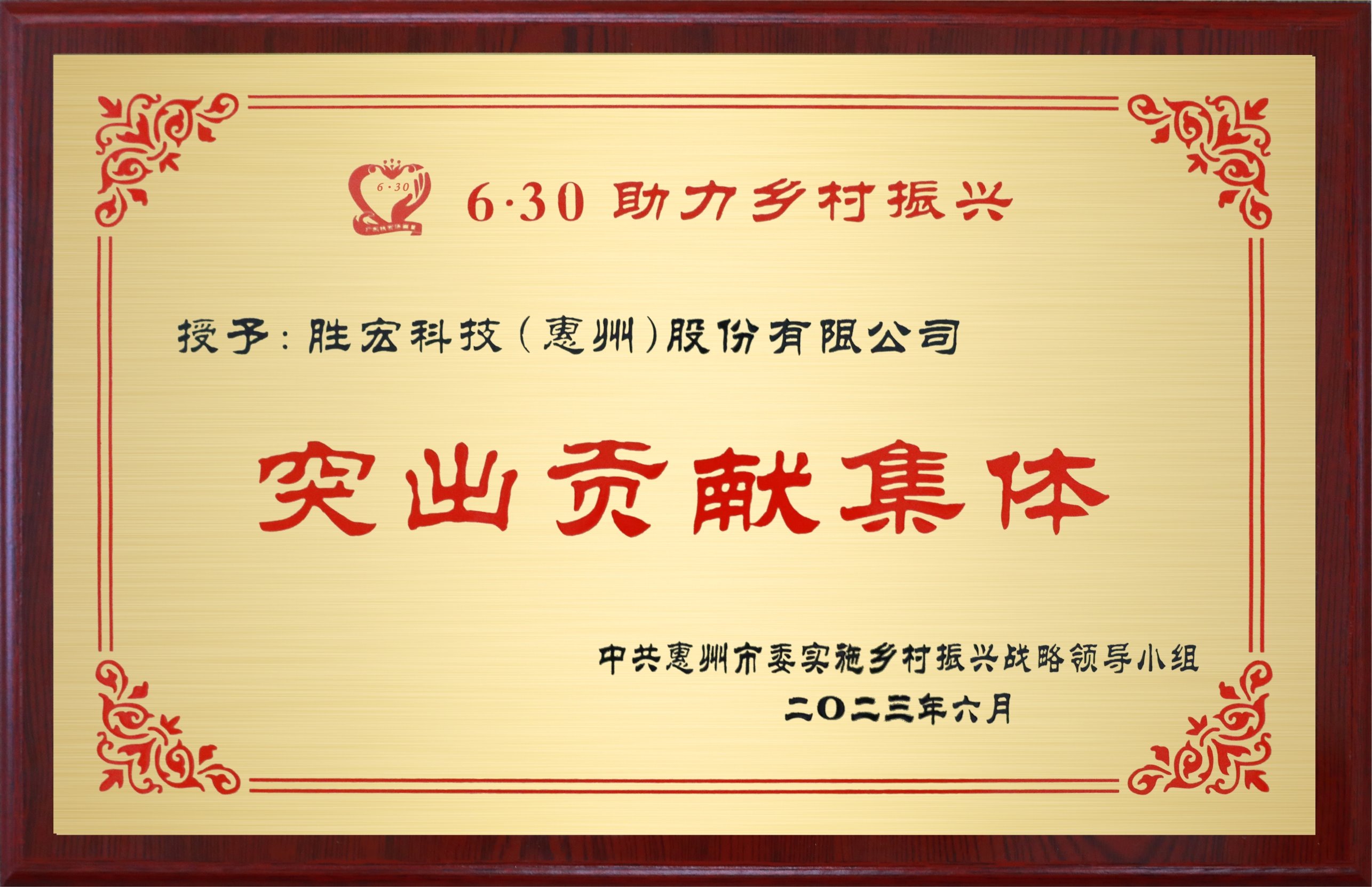 荣获惠州市乡村振兴“突出贡献集体”
